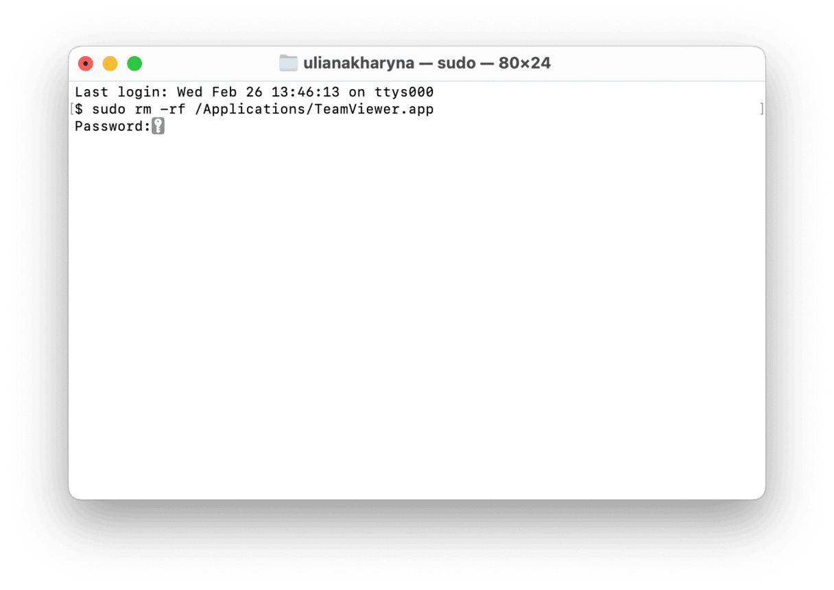 sudo rm -rf /Applications/TeamViewer.app - Naciśnij klawisz Return.