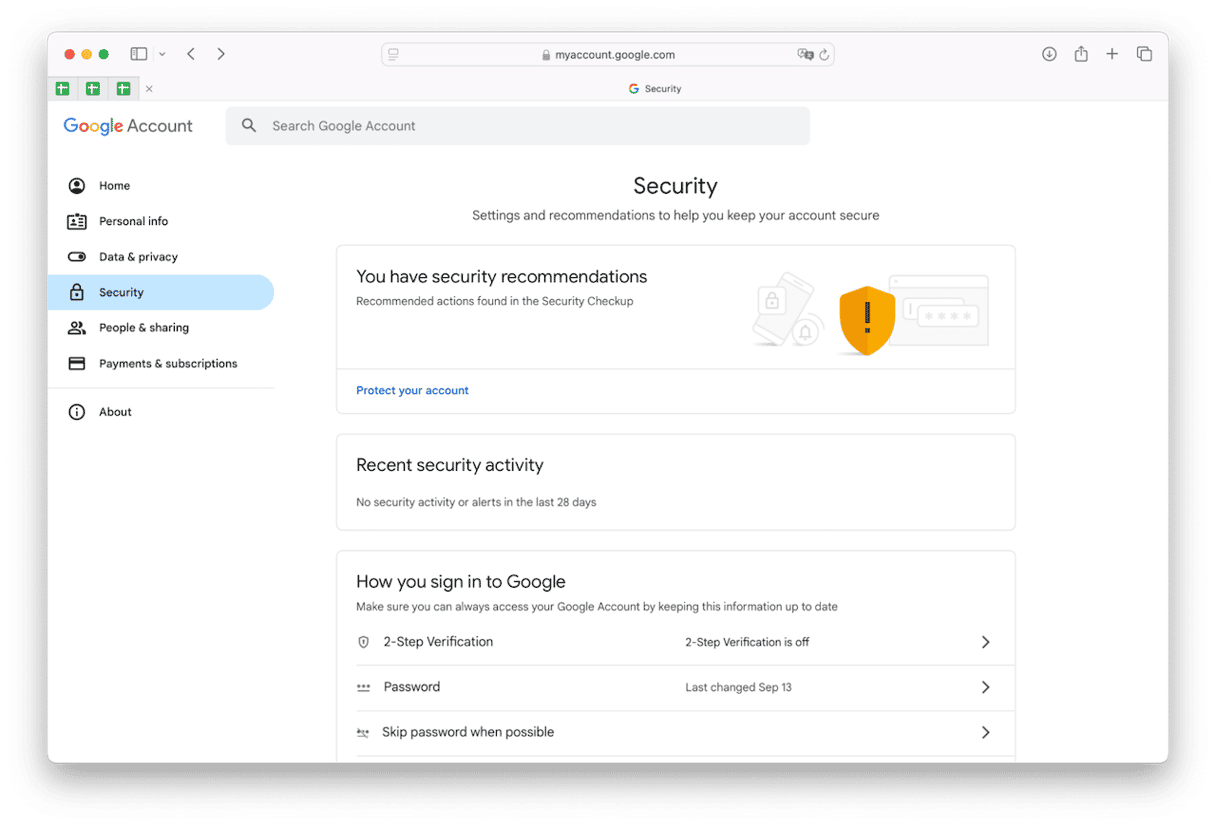 - Kliknij Bezpieczeństwo po lewej stronie ekranu.