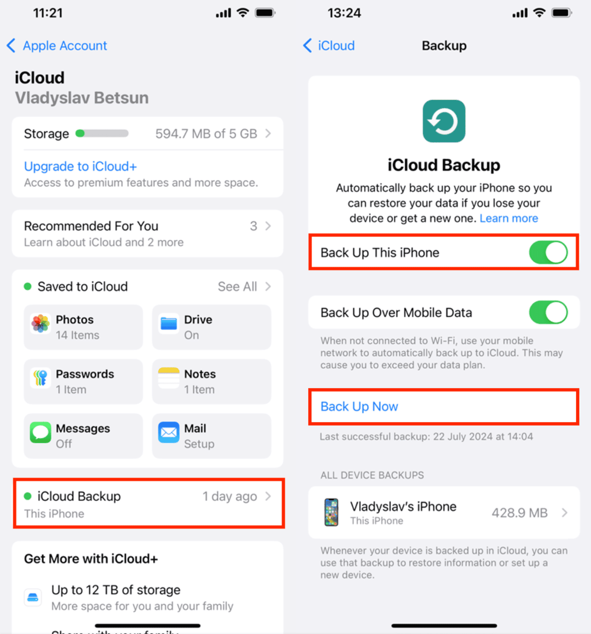 - Stuknij iCloud > Kopia zapasowa iCloud.