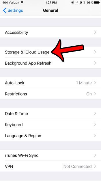 Krok 3: Przewiń w dół i wybierzPamięć masowa i użycie iCloudopcja.