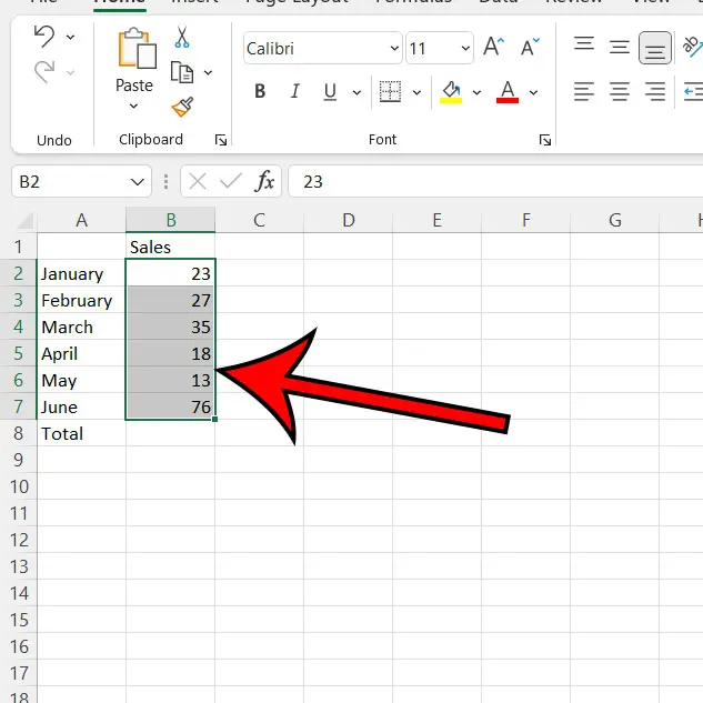 Krok 2: Użyj myszy, aby zaznaczyć wszystkie komórki, które chcesz uwzględnić w sumie.