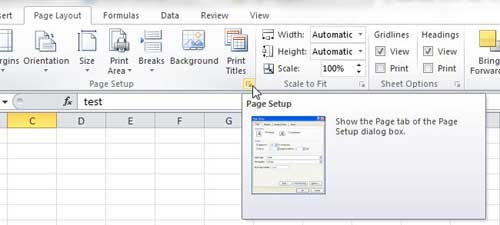 Ostatnią metodą formatowania wyglądu pliku Excel, szczególnie pod kątem drukowania, jest użycie formatuKonfiguracja stronymenu. TheKonfiguracja stronymenu można znaleźć klikającKonfiguracja stronyprzycisk w prawym dolnym roguKonfiguracja stronyrozdział naUkład stronymenu.