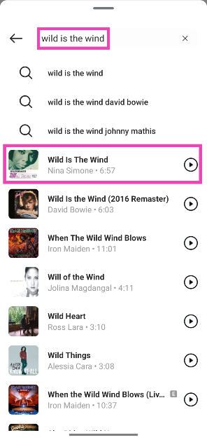 Krok 6:Jeśli nie możesz znaleźć preferowanego utworu na liście, po prostu wpisz go w polupasek wyszukiwaniau góry ekranu.