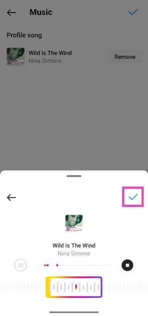 Krok 9:Skorzystaj zszukać baruna dole, aby wybrać część utworu, którą chcesz dodać do swojego profilu. Możesz wybraćOdcinek 30-sekundowy.
