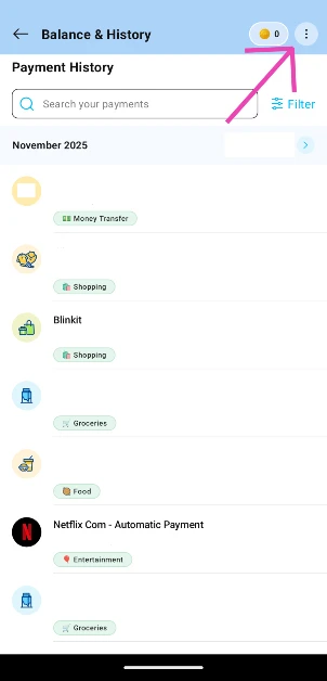 W chwili obecnej Paytm jest jedyną aplikacją UPI, która pozwala zarządzać historią transakcji poprzez ukrywanie poszczególnych płatności. Gdy ukryjesz płatność, zostanie ona usunięta z listy „historii transakcji” i przeniesiona do sekcji z ograniczeniami. Dostęp do tej sekcji możliwy jest wyłącznie po odpowiednim uwierzytelnieniu. Możesz zweryfikować się za pomocą Face ID, odcisku palca lub hasła urządzenia.