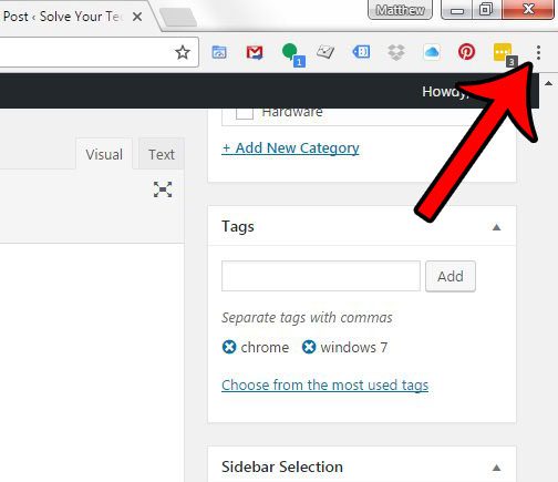 Krok 1: Otwórz przeglądarkę Chrome, a następnie kliknijDostosuj i kontroluj Google Chromeprzycisk w prawym górnym rogu okna.
