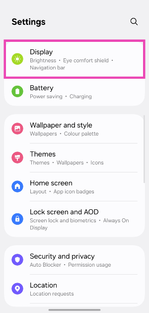 Krok 1:Idź doUstawieniai wybierzWyświetlacz.