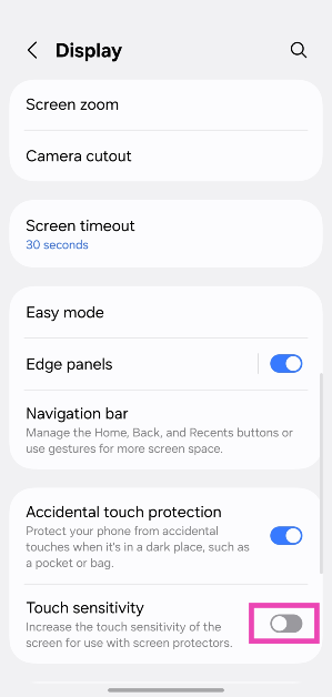 Jeśli używasz telefonu zochraniacz ekranu, zwiększ czułość wyświetlacza na dotyk, aby wyeliminować wszelkie problemy ze skanerem linii papilarnych w wyświetlaczu. Oto jak to zrobić.