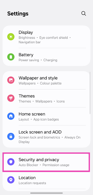 Krok 1:Idź doUstawieniai dotknijBezpieczeństwo i prywatność.