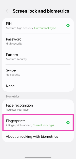 Idź doUstawienia>Bezpieczeństwo i prywatność>Blokada ekranu i dane biometryczne>Odciski palców, dotknij zapisanego odcisku palca i naciśnij „Usuń”.