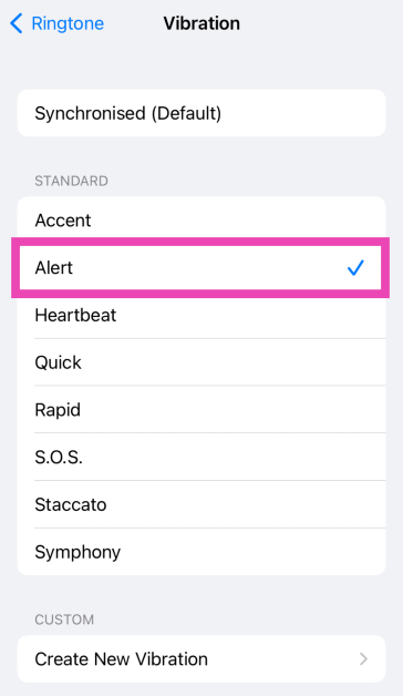 Krok 2:Wybierzton ostrzegawczydla którego chcesz utworzyć niestandardowy wzór wibracji.