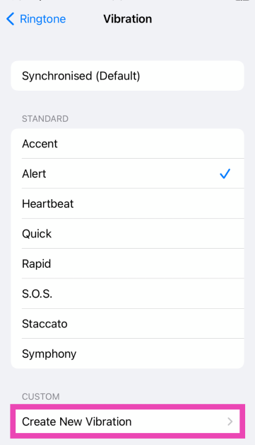 Krok 4:WybieraćUtwórz nową wibrację.