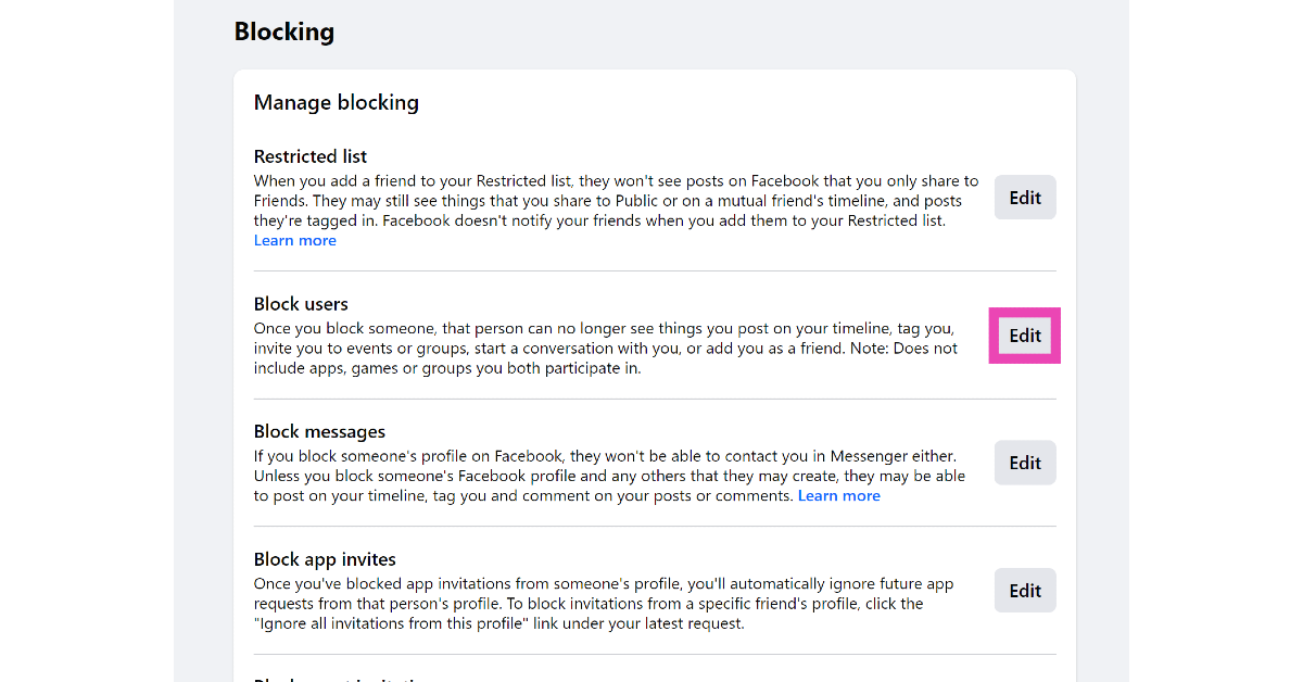 Krok 5:UderzyćRedagowaćobokBlokuj użytkowników.