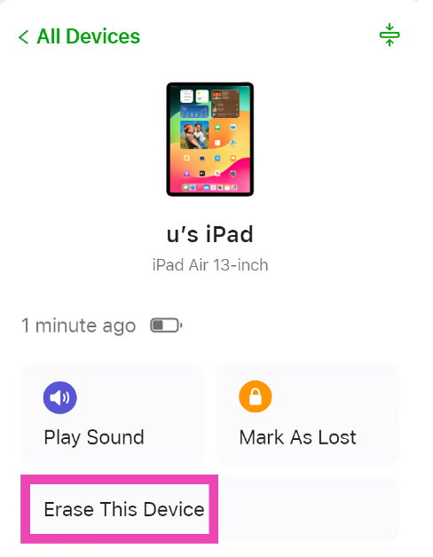 Przejdź do strony Znajdź moje w iCloud, zaloguj się przy użyciu swojego Apple ID, wybierz iPada i naciśnij „Wymaż to urządzenie”.