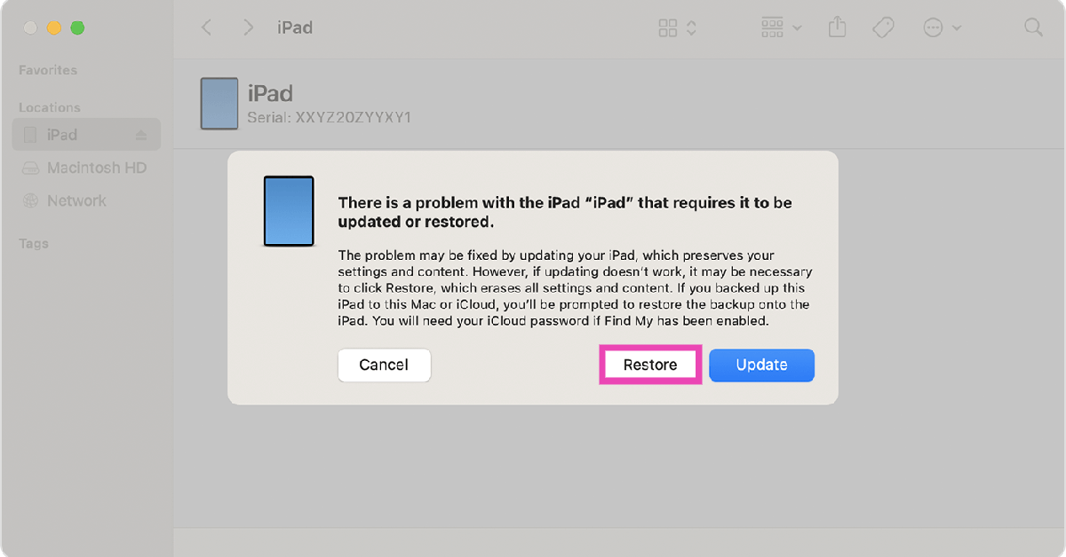 Krok 5:Znajdź swojeiPadaw Finderze/iTunes/Urządzeniach Apple.
