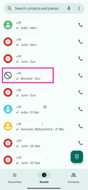 Przejdź do aplikacji Dialer, dotknij wielokropka i przejdź do Ustawienia>Zablokowane numery, aby wyświetlić listę blokowanych.