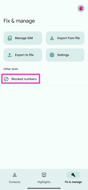 Przejdź do aplikacji Kontakty Google, dotknij „Napraw i zarządzaj”, wybierz „Zablokowane numery” i naciśnij krzyżyk obok numeru, który chcesz odblokować.