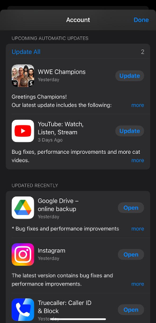 Krok 3:Tutaj znajdziesz listę aplikacji na urządzeniu zoczekująca aktualizacja.