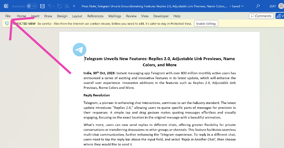 Użytkownicy napotykają również ograniczenia edycji dokumentów programu Word pobieranych z Internetu. Jest to środek zapobiegawczy zastosowany przez program Microsoft Word w celu ochrony komputera przed wirusami. Zaskakująco łatwo jest nakłonić użytkowników do pobrania pliku Word, ponieważ wydaje się to całkiem nieszkodliwe. Jednak złośliwe podmioty nadal mogą przedostać się do Twojego systemu. Funkcja „Widoku chronionego” programu Microsoft Word zapobiega temu, otwierając plik w trybie tylko do odczytu.