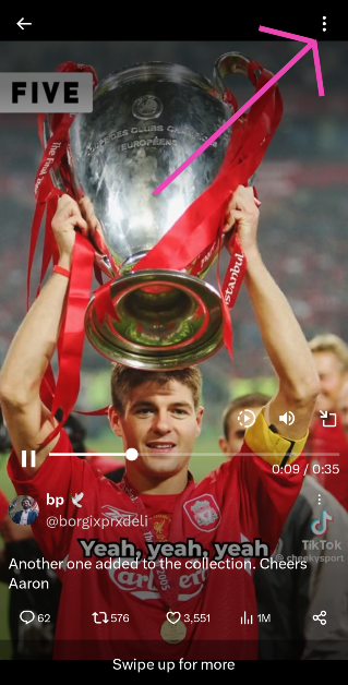 Naciśnij i przytrzymaj film i wybierz „Opublikuj wideo”, aby udostępnić go bez oryginalnego tweeta. Nazwa oryginalnego plakatu filmu pojawi się pod filmem w Twoim poście.