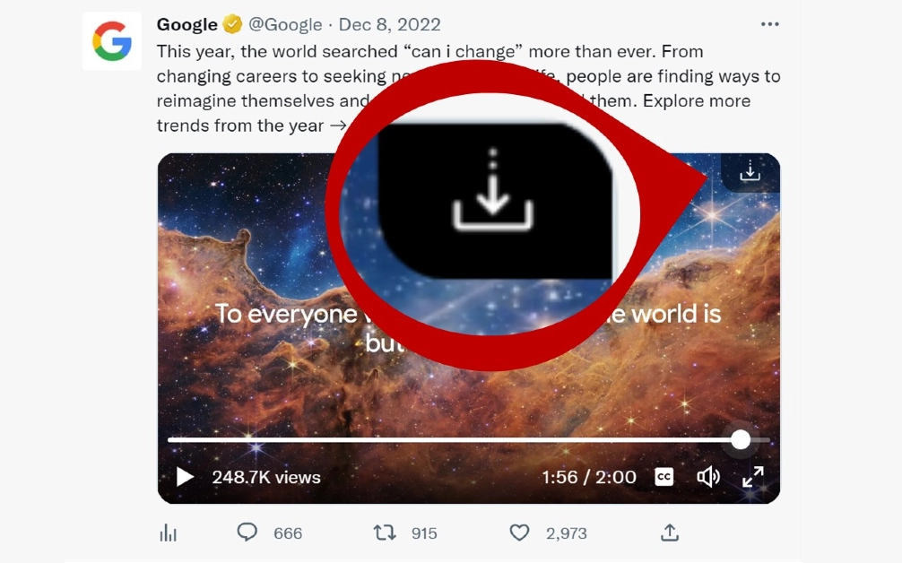 Metody wymienione powyżej uwzględniają oryginalny plakat filmu. Jeśli nie chcesz, aby nazwa OP znajdowała się pod filmem, pobierz go jako plik na swoje urządzenie i opublikuj ze swojego profilu. Abonenci Twitter Blue mogą natywnie pobierać filmy w aplikacji. Oto jak to zrobić.