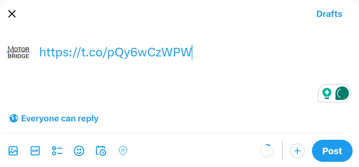 Krok 3:Theskrócony linkpojawi się w kreatorze tweetów.