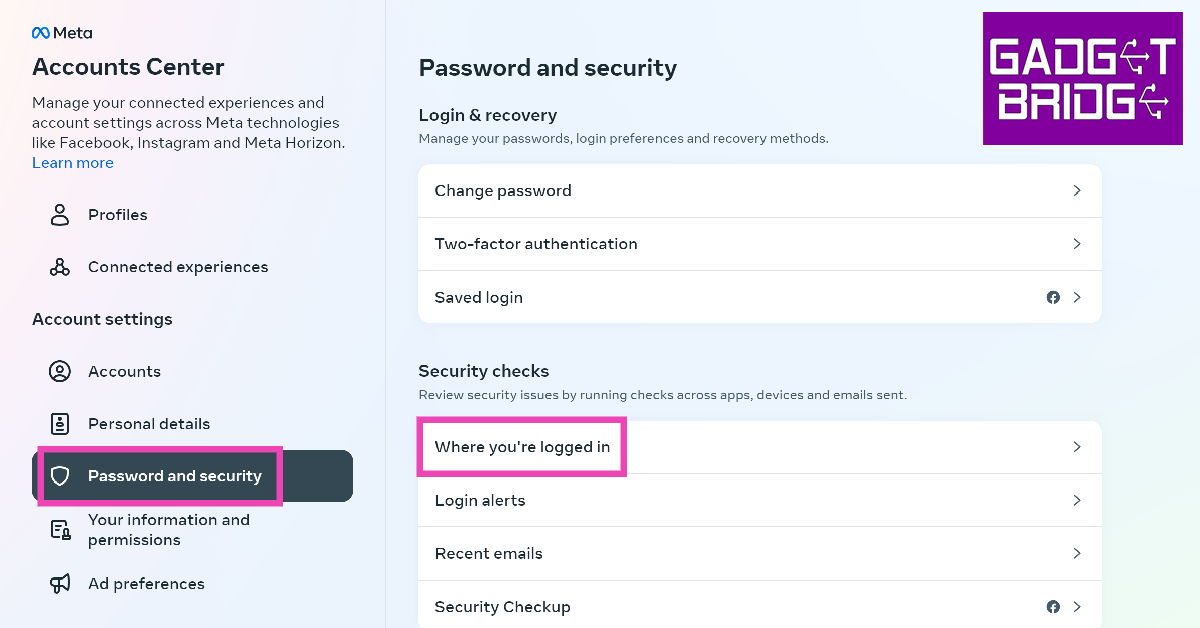 Krok 4:Przełącz naHasła i bezpieczeństwozakładkę i kliknijGdzie jesteś zalogowany.