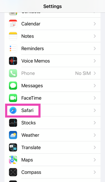 Krok 1:Idź doUstawieniai wybierzSafari.