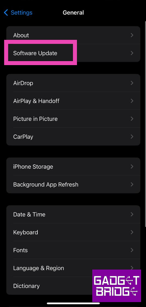 Krok 3:WybieraćAktualizacja oprogramowania.