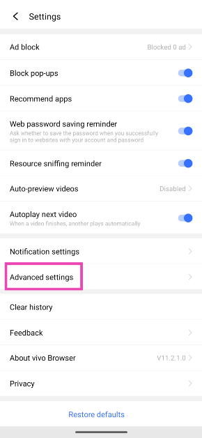Krok 1:Początekthenatywna przeglądarka internetowana telefonie Vivo/iQOO.