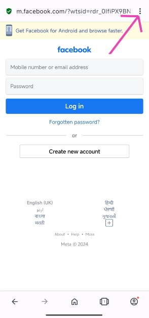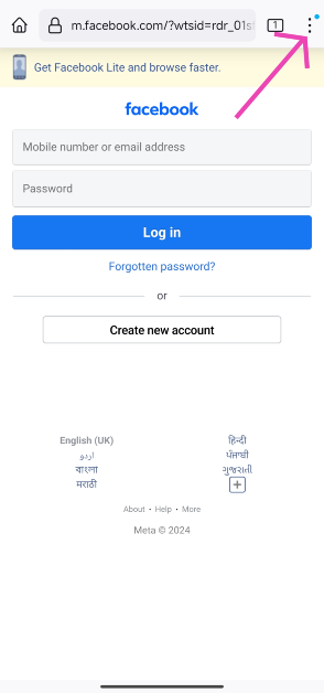 Krok 2:Przejdź do Facebookaoficjalna strona internetowa.