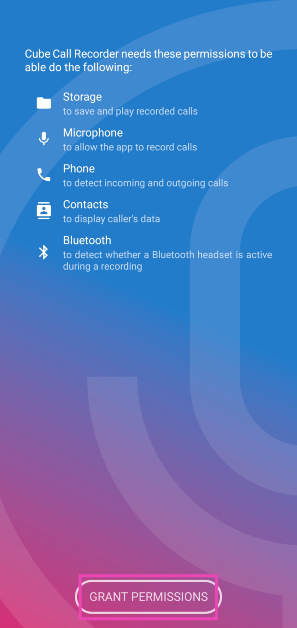 Krok 4:Daj aplikacji Cube ACR Helper to, co niezbędneuprawnienia.