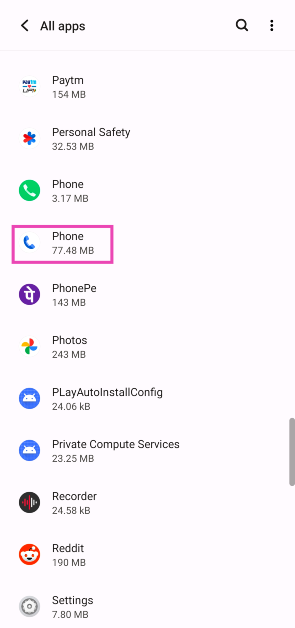 Krok 6:Przewiń w dół doTelefon Google’ai wybierz to.