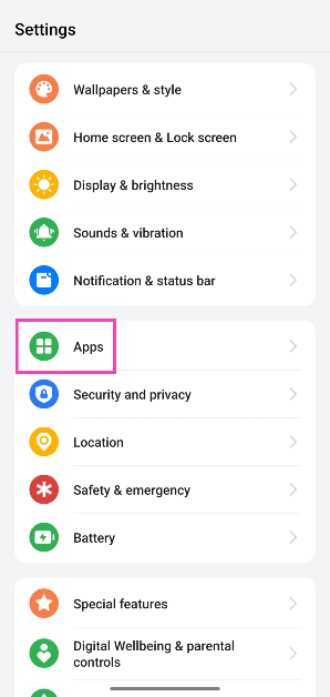 Krok 1:Idź doUstawieniai wybierzAplikacje.