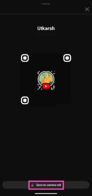 Krok 5:Kod QR Twojego kanału pojawi się na następnej stronie. KliknijZapisz w rolce z aparatu.