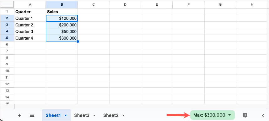 Іноді вам хочеться побачити швидкий розрахунок без додавання формули на аркуш. У Google Таблицях ви можете просто вибрати значення, а потім вибрати обчислення для перегляду без зайвих зусиль.