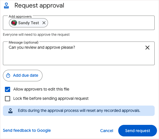 Якщо ви використовуєте обліковий запис Google Workspace для бізнесу чи навчання, перегляньте функцію схвалення. За допомогою нього ви можете запитувати схвалення від інших і відстежувати, що схвалено, а що ні.