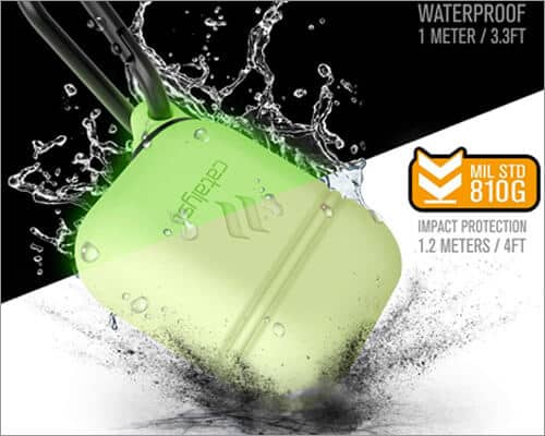 У той час як більшість із нас вважають за краще карабінерам прикріпити наші аеропободи до сумки чи штанів чи інших петлі, деякі з нас люблять тримати його мінімально з шнурком. Як результат, цей випадок поставляється з ремінцем зап'ястя замість стандартного карабінера. Хоча зважувати лише половину унції, цей випадок повністю здатний захищати ваші навушники Bluetooth.