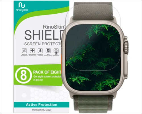 Це те, якщо вам потрібен універсальний захисний кожух для вашого дорогого Apple Watch Ultra. NewWays пропонує набір із 6 захисних плівок із загартованого скла, 2 комп’ютерних бамперів та комплекту для простого встановлення. Крім того, захисна загартована плівка 9H забезпечує чіткість HD і не погіршує видимість навіть під прямими сонячними променями. Крім того, бренд наніс на поверхню плазмове олеофобне покриття, що надає їй гладкої чутливої текстури.