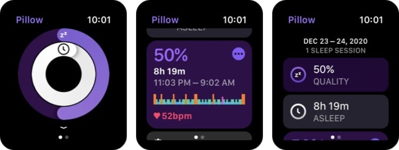Pillow має один із найкращих інтерфейсів користувача серед усіх програм для відстеження сну для Apple Watch. Додаток має чудову нижню панель меню з великими кнопками, меню та приголомшливими графіками сну для читання даних.