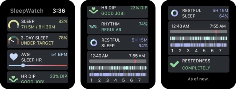 Sleep Watch — це ще одна здатна стороння програма для відстеження сну за допомогою Apple Watch. Компанія стверджує, що використовує штучний інтелект (AI) для вимірювання, відстеження та покращення якості сну.