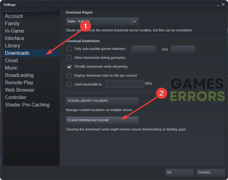 2. Перейдіть доЗавантаженнявкладку, а потім натиснітьОчистити кеш завантажень.