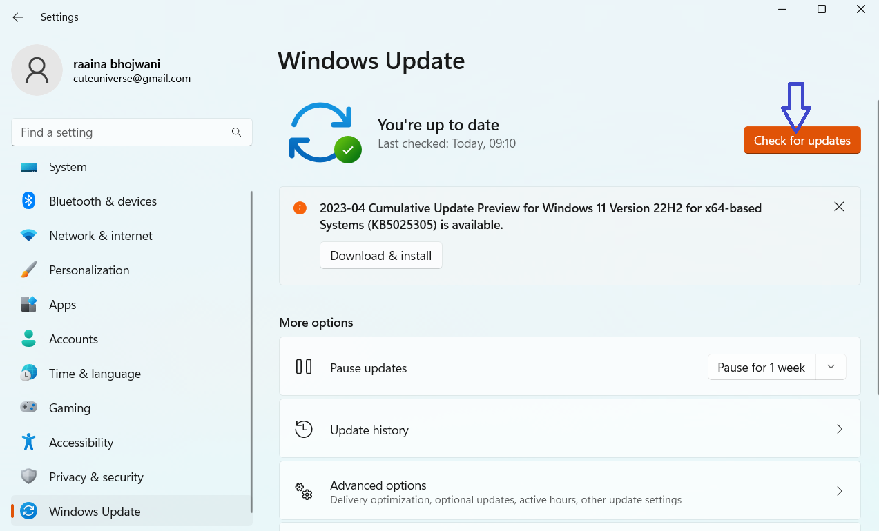 - Потім натисніть наПеревірте наявність оновленьі завантажити рекомендовані оновлення.