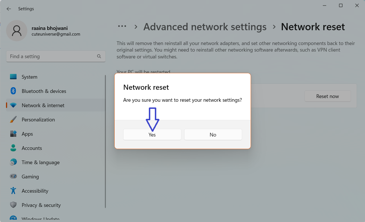 - Після цього натисніть наСкинути зараз> потім натиснітьтак.