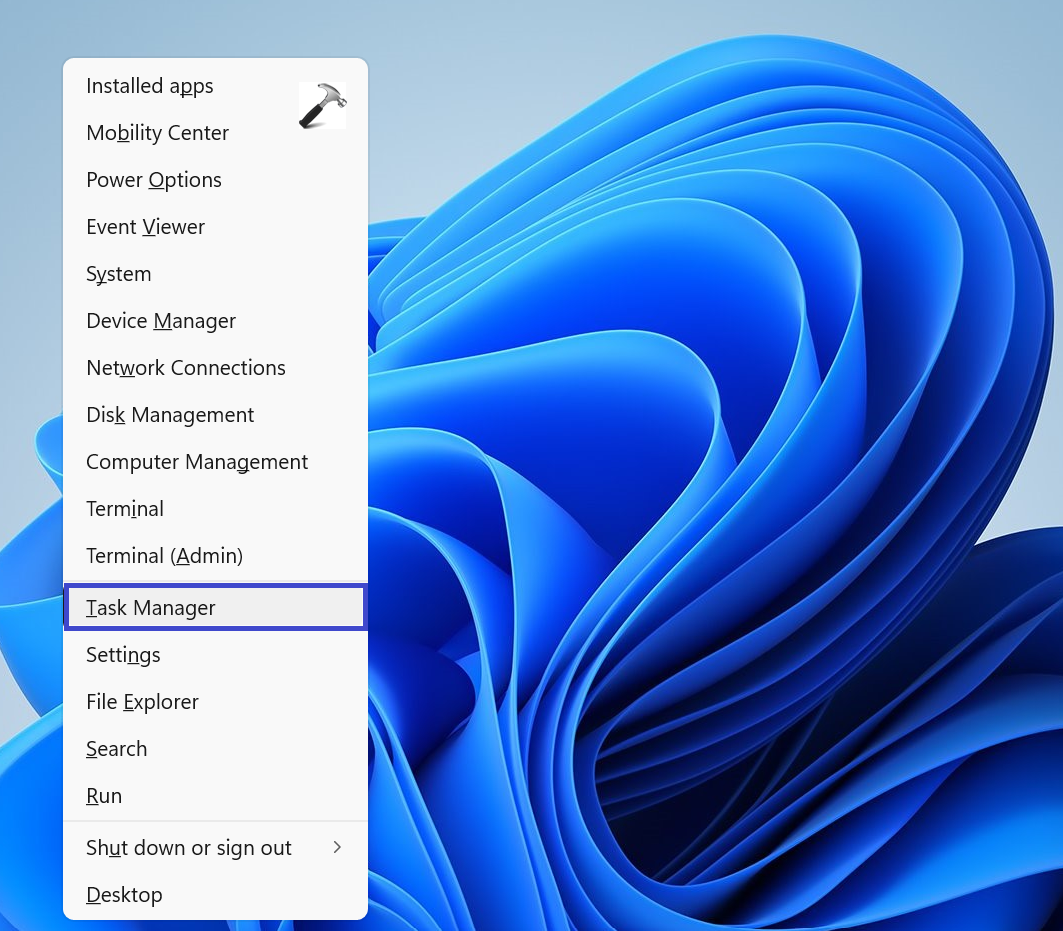 1. Натисніть клавішу Windows + X і натисніть «Диспетчер завдань».