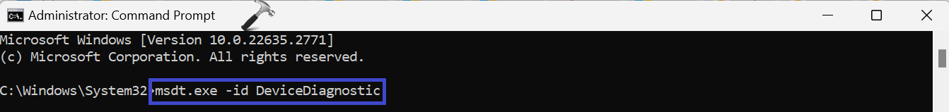 3. Відкриється засіб усунення несправностей діагностики пристрою. (Див. зображення нижче)