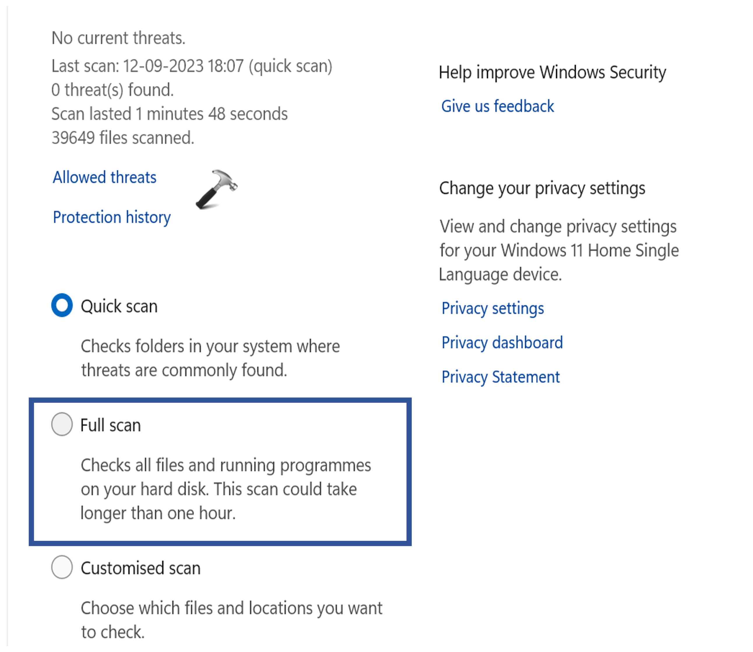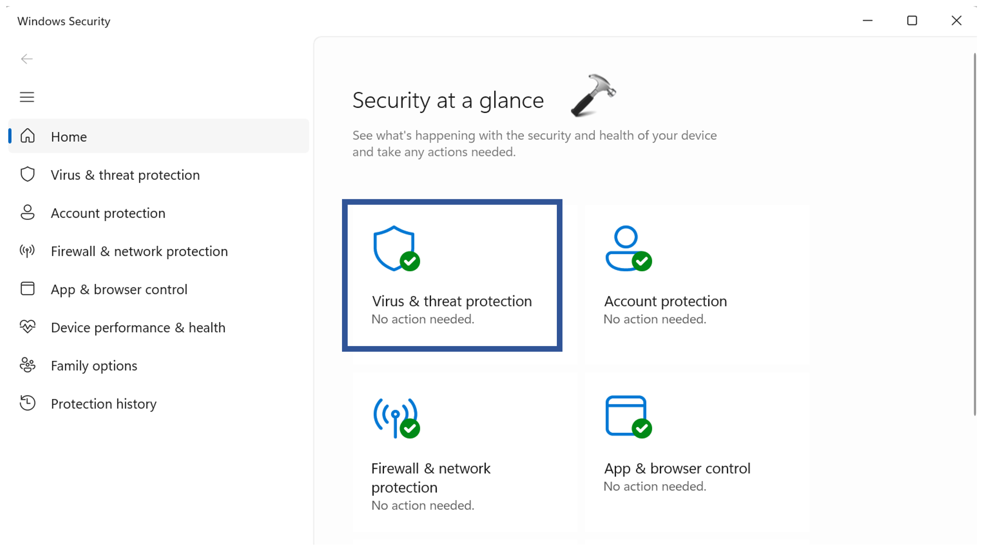 2. Тепер виберіть «Захист від вірусів і загроз”.
