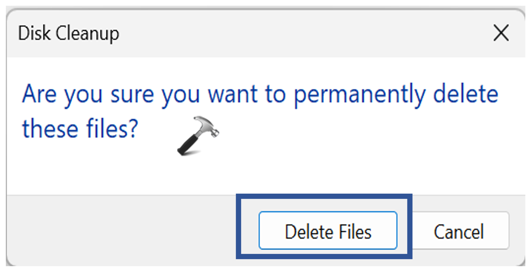 5. З’явиться вікно запиту. Натисніть "Видалити файли“.