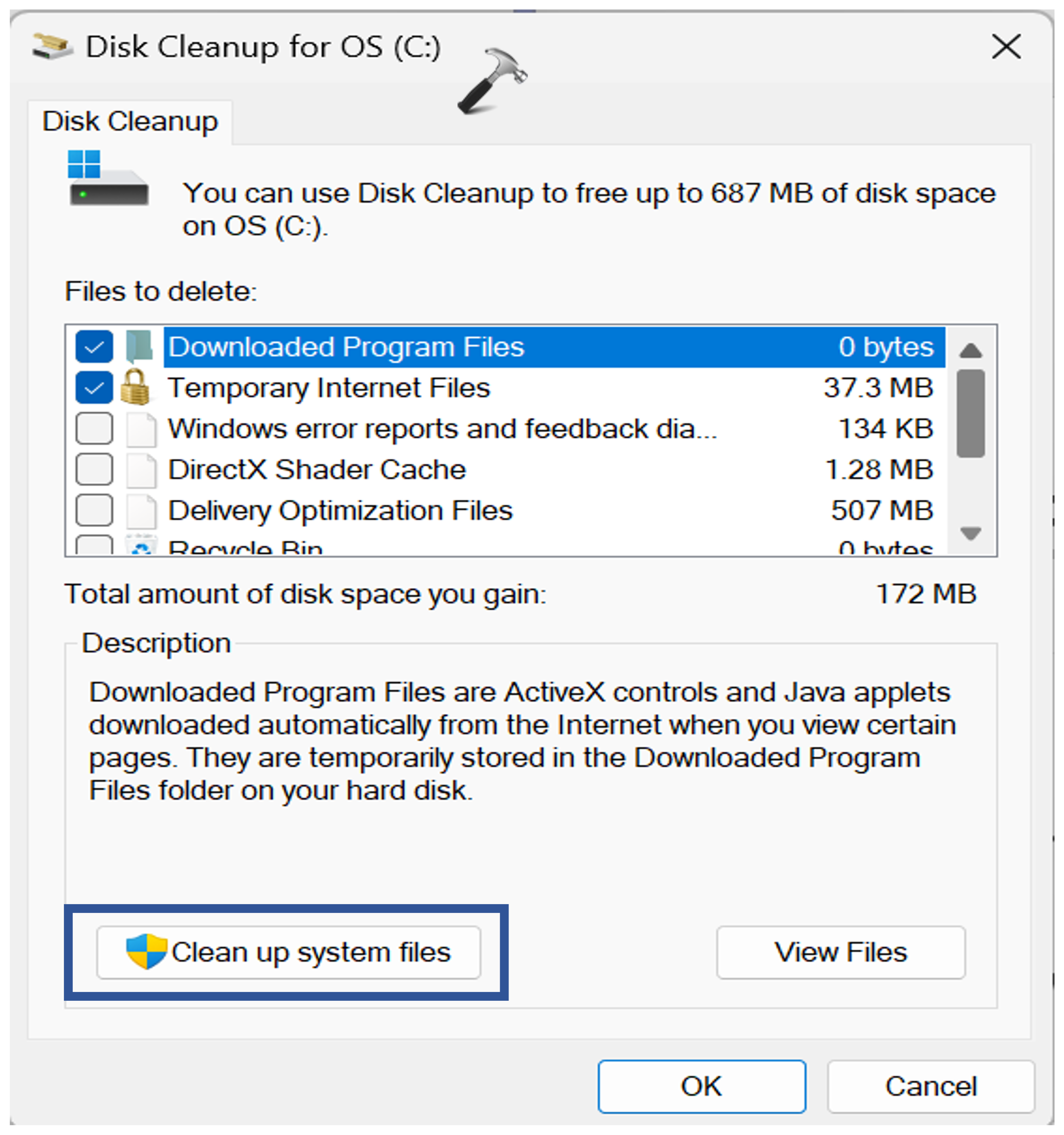 3. Тепер виберіть «Очистити системні файлиНатисніть OK.