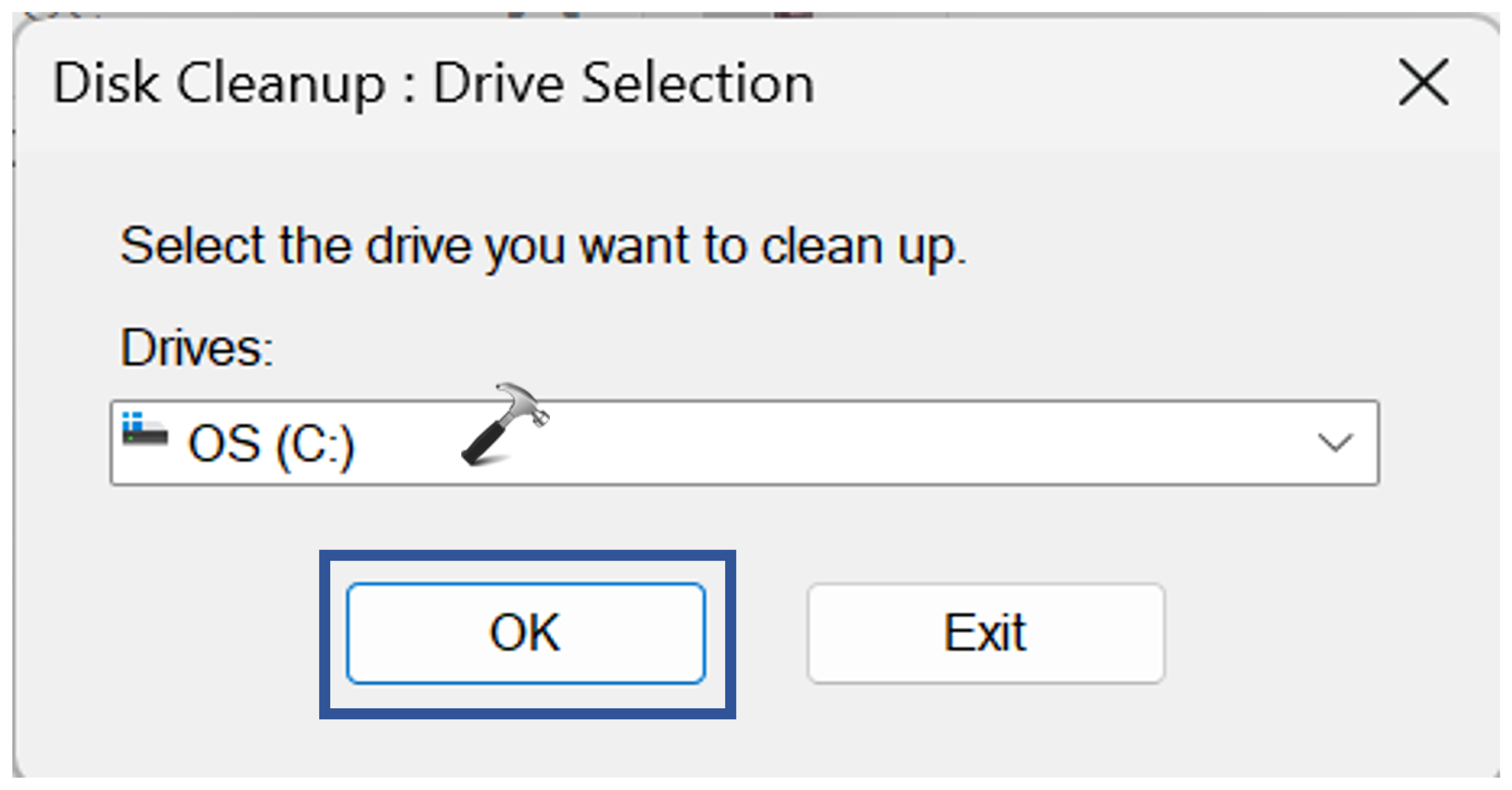 2. «Очищення диска” З’явиться спливаюче вікно Натисніть OK.